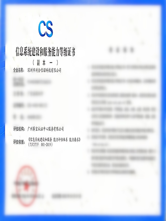 • 信息安全管理體系證書