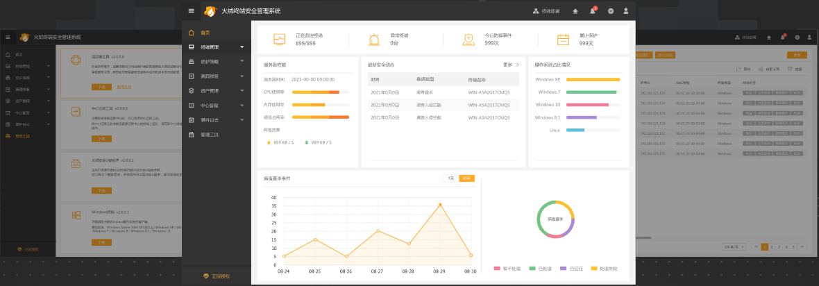 歷經(jīng)三年的迭代與打磨后,火絨終端安全管理系統(tǒng)1.0(火絨企業(yè)版)完成大版本更新,進(jìn)入2.0階段,并展開(kāi)公測(cè)。2.0版本在沿襲了1.0版的極致專(zhuān)業(yè)的產(chǎn)品品質(zhì)和核心技術(shù)以外,增加了更多針對(duì)企業(yè)內(nèi)外網(wǎng)脆弱點(diǎn)的防護(hù)功能,拓展了企業(yè)對(duì)于終端管理的范圍和方式,提升了產(chǎn)品的兼容性、易用性,最終實(shí)現(xiàn)更直觀(guān)的將威脅可視化,讓管理輕便化,充分達(dá)到防護(hù)企業(yè)的網(wǎng)絡(luò)財(cái)產(chǎn)與信息安全的。